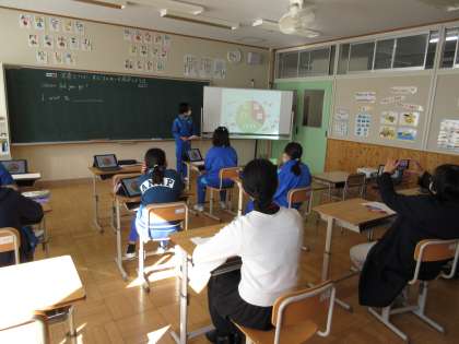栄養士さんに来校いただき、「オリジナルカレーの食材について栄養素や産地の言い方を理解して、やり取りしよう!」に取り組んできた成果を栄養士さんの前で発表しました。