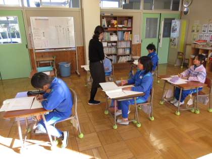 11月20日(月) 2年国語 公開日 2023/11/20 更新日 2023/11/20 できごと 今までの学習(説明の仕方のポイント)を生かし、自分が考えた○○おもちゃの作り方の説明文づくりの下描きをもとに、今日は清書をしました。清書では、説明が分かりやすくなるよう絵なども付け加えます。