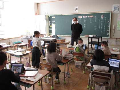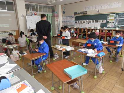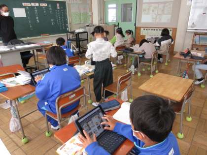 11月20日(月) 3年国語 公開日 2023/11/21 更新日 2023/11/21 できごと 「すがたをかえる大豆」のまとめの学習として、めあて「すがたをかえる○○をつくろう」を立て、本やタブレットを参考に説明文作りを始めました。