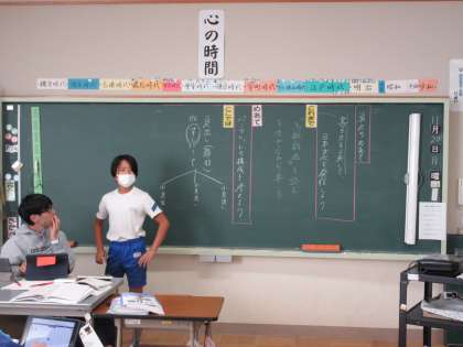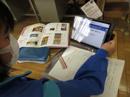 11月21日〔火〕 6年国語 公開日 2023/11/21 更新日 2023/11/21 できごと 「鳥獣戯画」の学習を生かし、ここでは単元のめあてを「書き方を工夫して日本文化を発信しよう」とし、日本文化を発信するパンフレット作りに取り組んでいます。