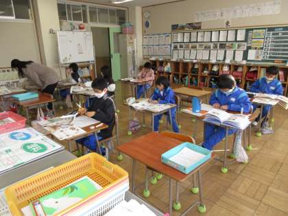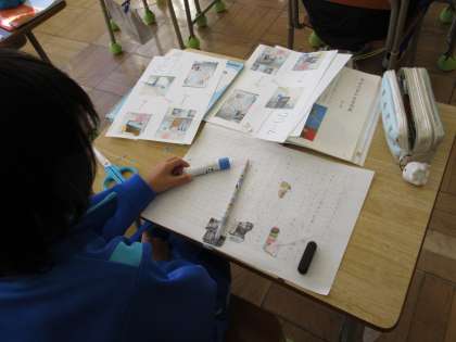 めあて「すがたをかえる○○の作文を完成しよう」を立て、それぞれ作文作りに取り組みました。