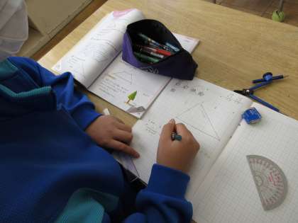 「形が同じ図形を調べよう(拡大図と縮図)」の学習のまとめとして、確かめの問題に取り組みました。