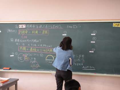 12月14日(木) 5年算数 公開日 2023/12/14 更新日 2023/12/14 できごと めあて「円周率を使って長さを求めよう」を立て、「円周率=円周÷直径」「円周=直径×円周率」を使って問題を解き合いました。