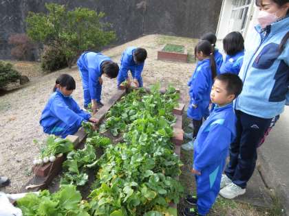 苗や種から育ててきた野菜の収穫をしました。