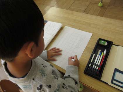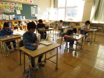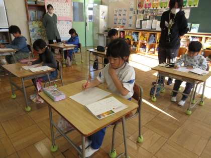 午後の時間を使って、全校で書き初め大会を行い、1,2年生は硬筆での書き初めをしました。