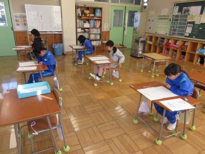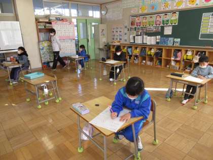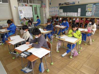 学力テスト2日目。今日も子どもたちは最後まで諦めることなく問題に取り組んでいました。