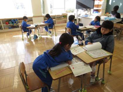 1月18日(木) 1年国語 公開日 2024/01/18 更新日 2024/01/18 できごと 「たのしいな、ことばあそび」で、めあて「ことばを へんしんさせよう」を立て、昨日の授業の続きを行い、「たい」「いか」「たき」に一文字足して言葉をつくりました。