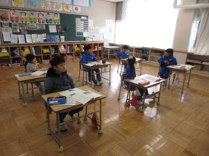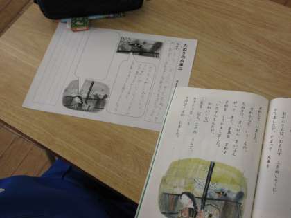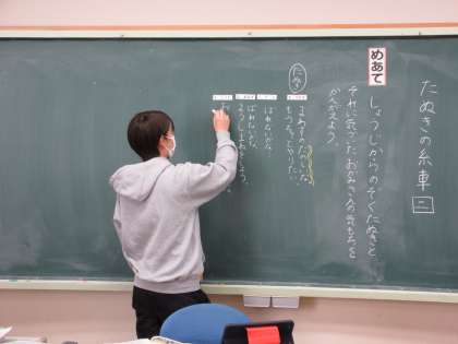 1月22日(月) 1年国語 公開日 2024/01/22 更新日 2024/01/22 できごと 「たぬきの糸車」で、めあて「しょうじから のぞく たぬきと、それに気づいた おかみさんの 気もちを 考えよう」を立て、読み取りを行いました。