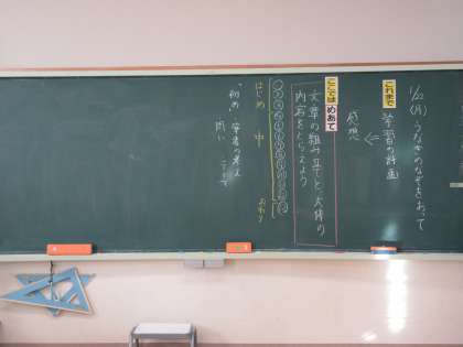 1月22日(月) 4年国語 公開日 2024/01/22 更新日 2024/01/22 できごと 「ウナギのなぞを追って」で、めあて「文章の組み立てと、大体の内容をとらえよう」を立て、形式段落や意味段落に分けたり、大体の内容を考えたりしました。