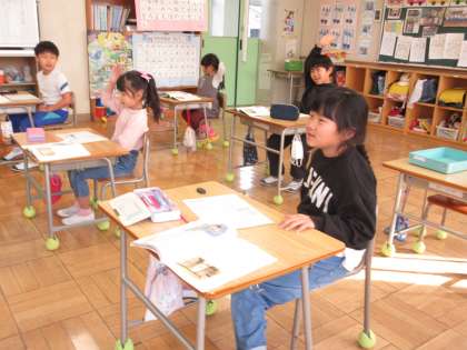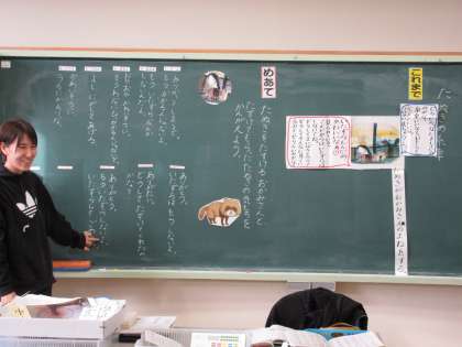1月23日(火) 1年国語 公開日 2024/01/23 更新日 2024/01/23 できごと 「たぬきの糸車」で、めあて「たぬきをたすける おかみさんと、たすけてもらった たぬきの気もちを 考えよう」を立て、一人一人の考えを発表し合いました。