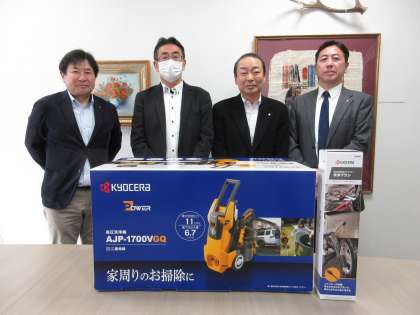 1月23日(火) 藤岡ロータリークラブより高圧洗浄機をいただきました 公開日 2024/01/23 更新日 2024/01/23 できごと 藤岡ロータリークラブの会長さんを含む3名の方が来校され、高圧洗浄機を寄贈くださいました。ありがとうございます。学校の環境美化に役立てていきたいと思います。