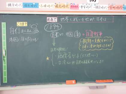 めあて「世界と戦争を始めた日本は」を立て、日清戦争について資料を使って調べました。