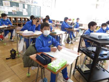 1月29日(月) 5年国語 公開日 2024/01/29 更新日 2024/01/29 できごと めあて「筆者は、どのような思いでタイトルを付けたか考えよう」を立て、今までの学習をもとに、タイトルに込められた思いを考えました。