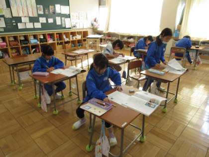 1月31日(水) 2年道徳 公開日 2024/01/31 更新日 2024/01/31 できごと 資料「ミーボーしんぶん」をもとに、主人公が気付いた「自分のよいところ」について考える活動を通して、自分の長所に気付き、見付けていくことのよさについて学習しました。