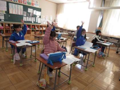「見たこと かんじたこと」で、めあて「友だちの詩のいいところを見つけて、つたえましょう」を立て、友だちがつくった詩を読み、よかったことを発表し合いました。