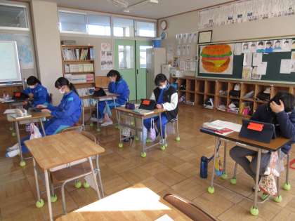 2月8日(木) 6年国語 公開日 2024/02/08 更新日 2024/02/08 できごと めあて「6年間の思い出を言葉にして表現しよう」を立て、思いつく思い出をタブレットに打ち込み、仲間分けをしながら表現したいことを決めました。