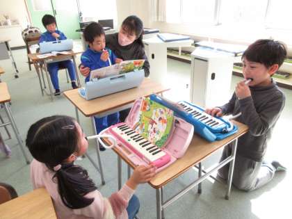 2月9日(金) 2年音楽 公開日 2024/02/09 更新日 2024/02/09 できごと めあて「いきのつよさに気をつけながらふこう」を立て、けん盤ハーモニカを使って、小ぎつねのうたを2人組又は3人組で工夫しながら演奏しました。