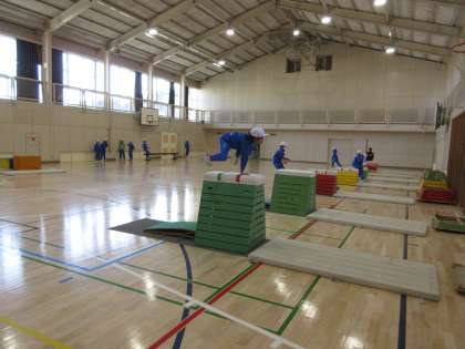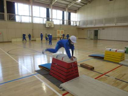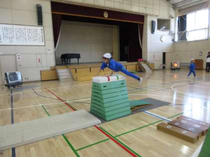 体育館で、跳び箱の学習をしました。