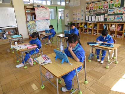 めあて「1年間の復習をしよう」を立て、ワークや端末を使って問題に取り組みました。