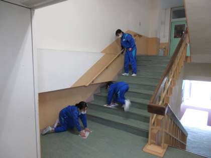 今朝は、各団毎に分かれて、なかよし清掃を行いました。