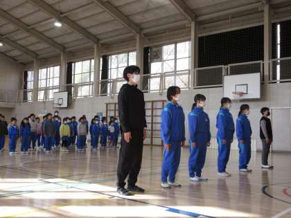 今朝の業前活動は、全校で君が代と校歌の練習を行いました。
