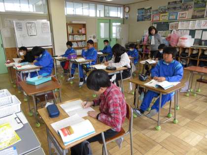めあて「自分の感じたことや、情景が伝わるように朗読する」を立て、一人一人朗読の練習をしました。