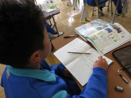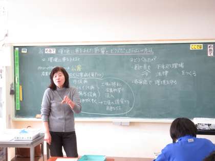 めあて「環境に害を与えた影響と、どう対応したらよいか考える」を立て、資料や教科書をもとに考えました。