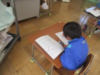 一年生は入学式後、教室へと戻り、お巡りさんの話を聞いたり、新しい教科書を手にしたりしました。