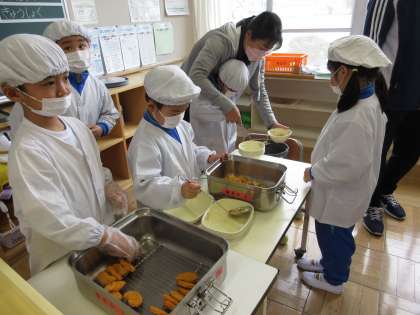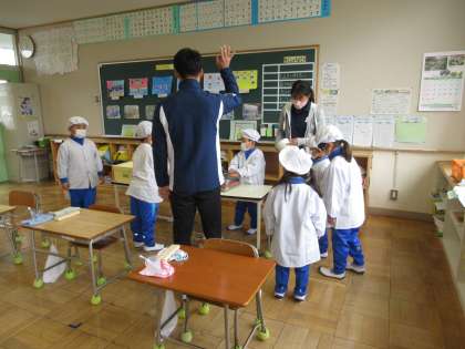 4月9日(火) はじめての小学校給食 公開日 2024/04/09 更新日 2024/04/09 できごと 小学校での初めての給食。子どもたちはとても楽しみにしていました。しっかりと身支度を調え、協力し準備を進めることができました。