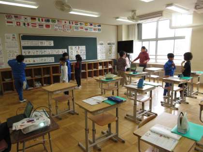 4月18日(木) 4年外国語活動 公開日 2024/04/18 更新日 2024/04/18 できごと めあて「あいさつをしてコミュニケーションを楽しもう」を立て、友達と英語であいさつをしながら楽しくコミュニーケーションを取り合っていました。