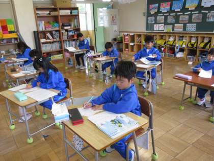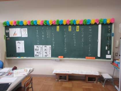 4月19日(金) 1年国語 公開日 2024/04/19 更新日 2024/04/19 できごと 「おうぞよろしく」の学習で、今日は自己紹介カードを書きました。作った自己紹介カードは、今後行われる生活科の学校探検でいろいろな先生や、お友達に自己紹介をしながら手渡されることでしょう。