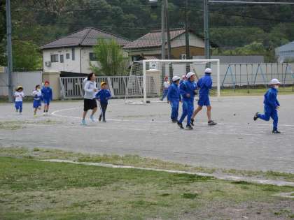 毎日「USA」の曲に合わせ、全校児童が走っています。