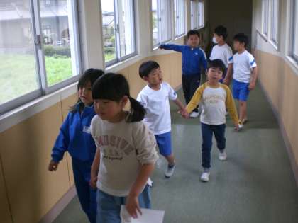 2年生のお兄さんお姉さんが、1年生を連れて学校探検をさせてくれました。