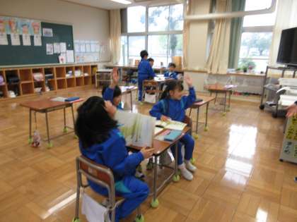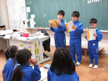 「ふきのとう」で、音読練習をし中間発表を行いました。後半では、動作化(動きを付ける)しながら音読をできるよう練習しました。