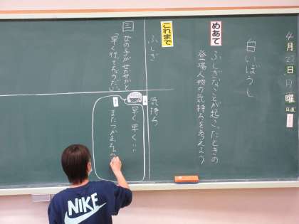 4月22日(月) 4年国語 公開日 2024/04/22 更新日 2024/04/22 できごと 「白いぼうし」の学習で、めあて「ふしぎなことが起こったときの登場人物の気持ちを考えよう」を立て、出来事から気持ちを考えました。