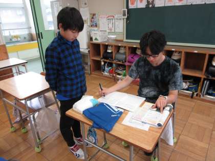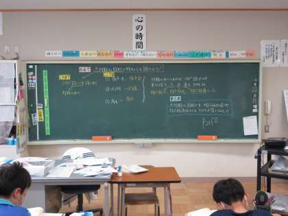 めあて「点対称な図形の特徴を調べよう」を立て学習をしました。まとめでは「点対称な図形でも、対応する辺の長さや対応する角の大きさは、それぞれ等しくなる」とまとめることができました。