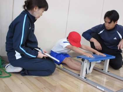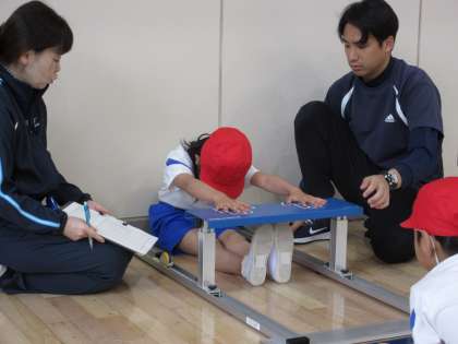今日は、スポーツテストで長座体前屈と握力測定を行いました。