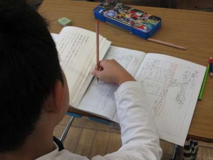 「銀色の裏地」の学習で、めあて「4の場面の心情を読み取ろう」を立て、理緒の心情について考えました。