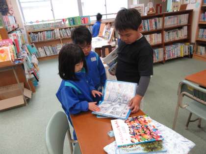 国語の時間を使って、図書室へ行き本を借りたり読書をしたりしました。