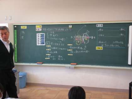 めあて「天気の変化にきまりはあるのか?」を立て、雲の動きから考えました。