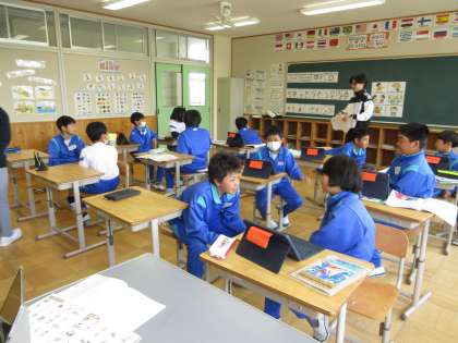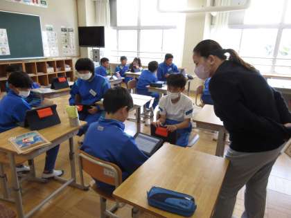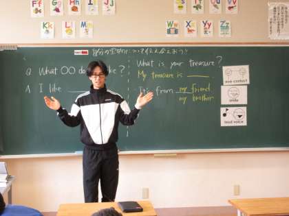 めあて「自分の宝物について伝え合おう」を立て、友達に英語で自分の宝物を伝え合いました。