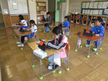タブレット端末の持ち帰りに向けて、情報モラルについて学習しました。