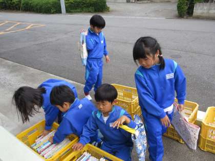 5月8日(水) 巡回図書(1年) 公開日 2024/05/08 更新日 2024/05/08 できごと 1年生にとって2度目となる巡回図書では、借り方にも慣れ、お気に入りの本を探して、どの子もスムーズに借りることができました。