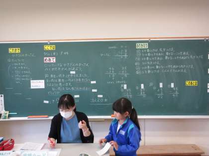 5月10日(金) 2年算数 公開日 2024/05/10 更新日 2024/05/10 できごと めあて「いろいろなひきざんの しかたを かんがえよう」を立て、10の位や答えに0がある場合の筆算の仕方を学習しました。