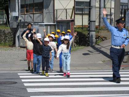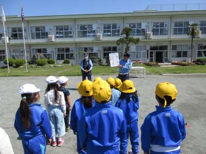 5月10日(金) 1,2年交通安全教室1 公開日 2024/05/10 更新日 2024/05/10 できごと 藤岡警察署の交通安全課の方や鬼石駐在所の方にお世話になり、交通安全教室を行いました。最初に横断歩道の渡り方を警察の方から教えていただき、その後、に横断歩道を実際に渡りました。