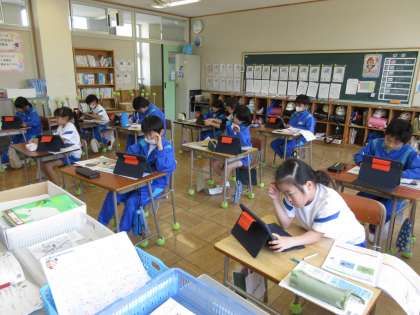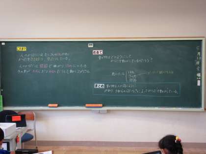 5月10日(金) 4年理科 公開日 2024/05/10 更新日 2024/05/10 できごと めあて「動物はどのようにして、からだをうごかしているのだろうか?」を立て、教科書や資料を使って調べました。まとめでは「動物も人と同じように骨や筋肉、関節があり、それらのはたらきによって、からだを動かしている」とまとめることができました。