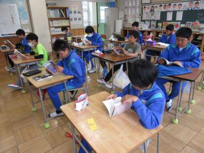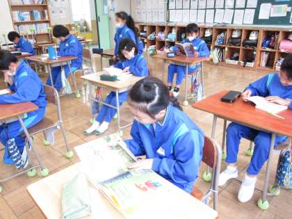 5月13日(月) 朝読書の様子2 公開日 2024/05/13 更新日 2024/05/13 できごと 毎朝8:20分から35分まで朝読書に取り組んでいます。個々に好きな本を読んだり、時には担任が読み聞かせをしたりしています。