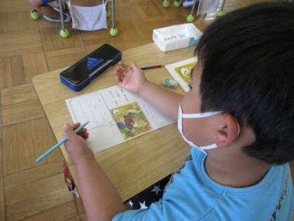 5月17日(金) 1年国語 公開日 2024/05/17 更新日 2024/05/17 できごと 「はなのみち」の学習で、めあて「1ばめんのえをみて くまさんのしたことを たしかめよう」を立て、1の場面について詳しく読み取っていきました。