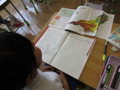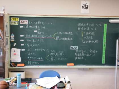 めあて「藤岡市の地図を見て気付いたことを発表しよう」を立て、地図を見て気付いたことを発表し合いました。