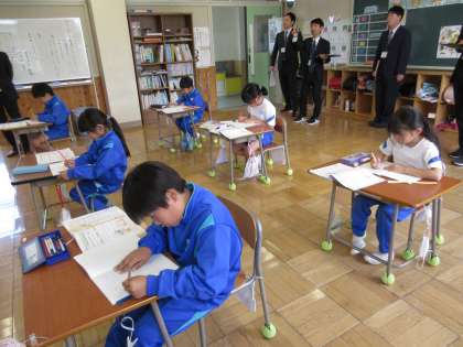 藤岡市教育委員会の年度始め訪問があり、教育長さんはじめとする教育委員会の方々が来校し、授業を参観したり、学校運営に関する助言をしたりしてくださいました。